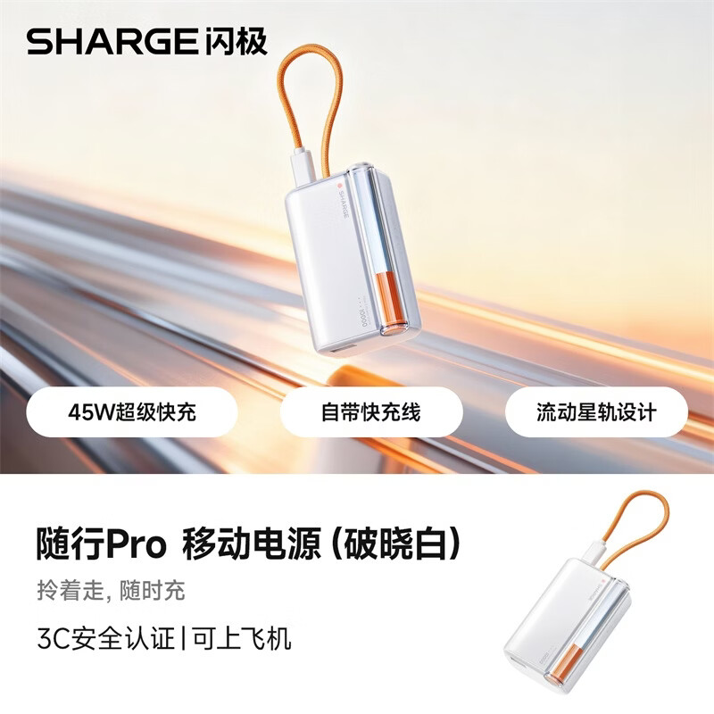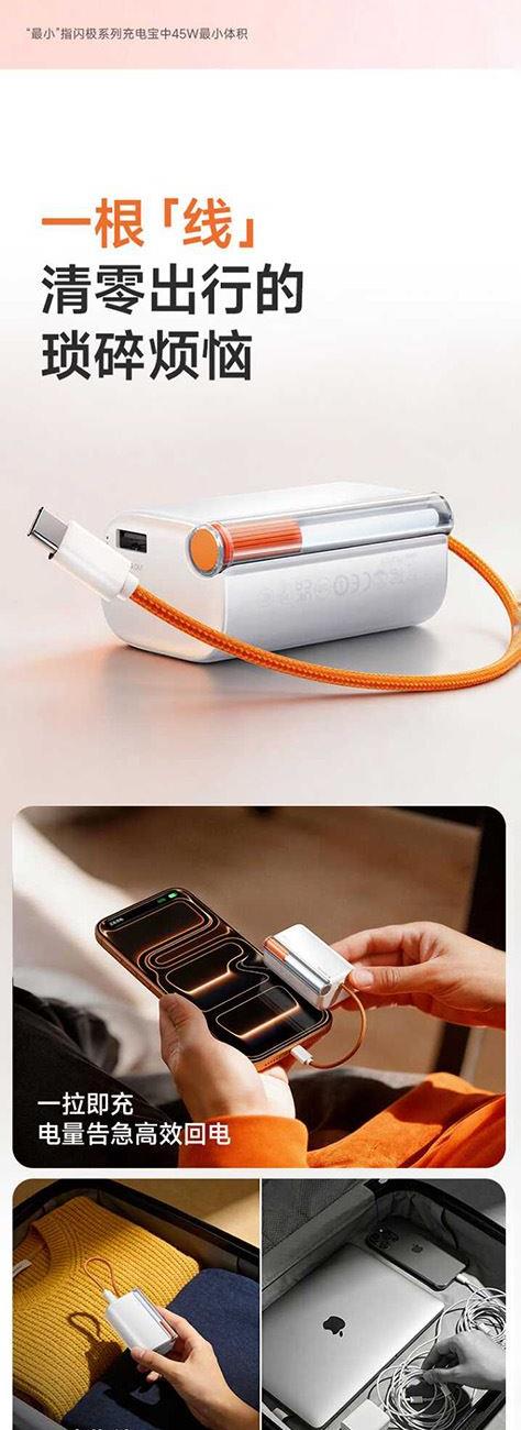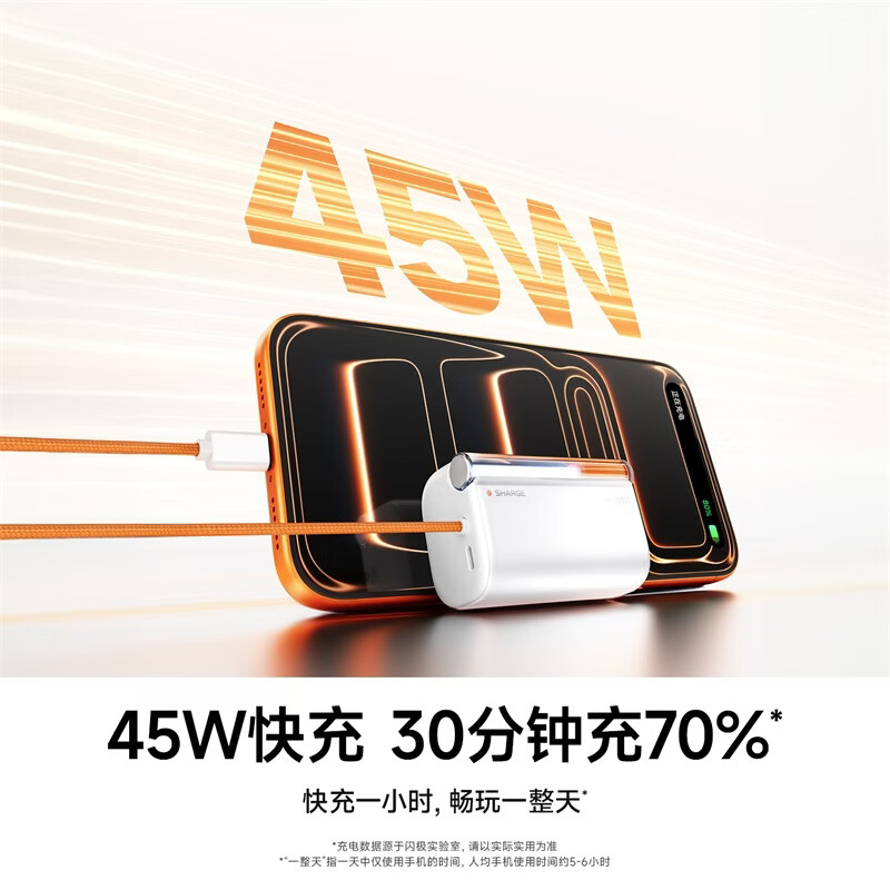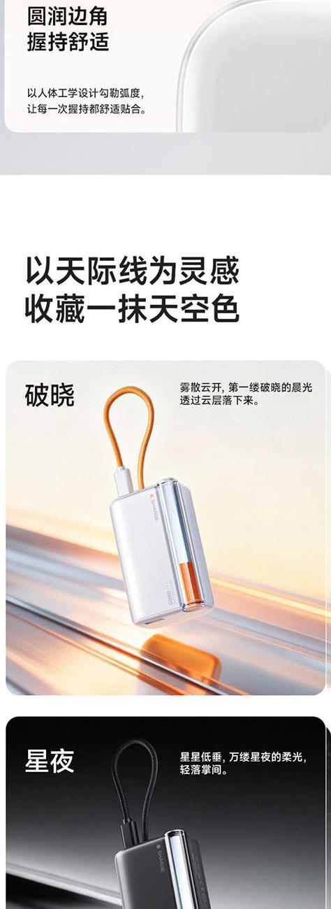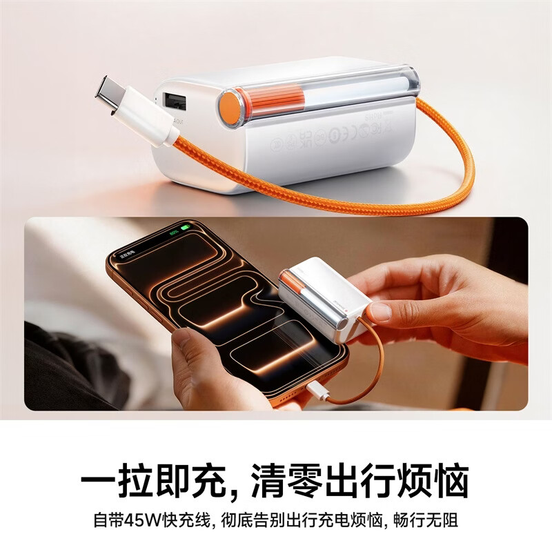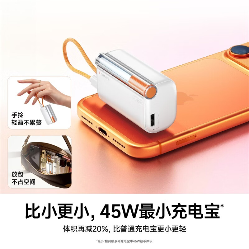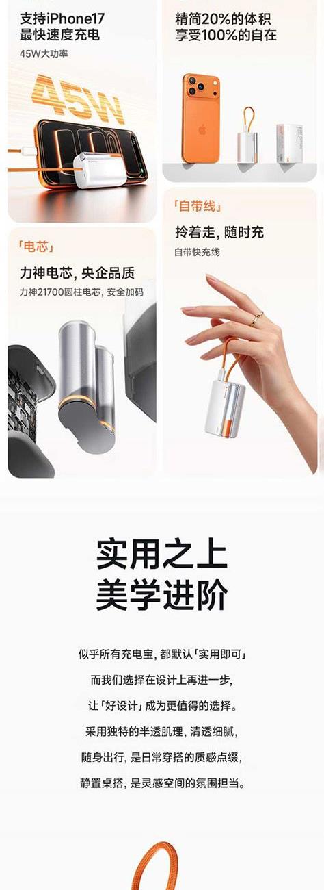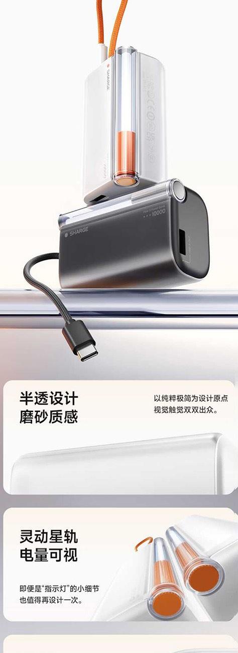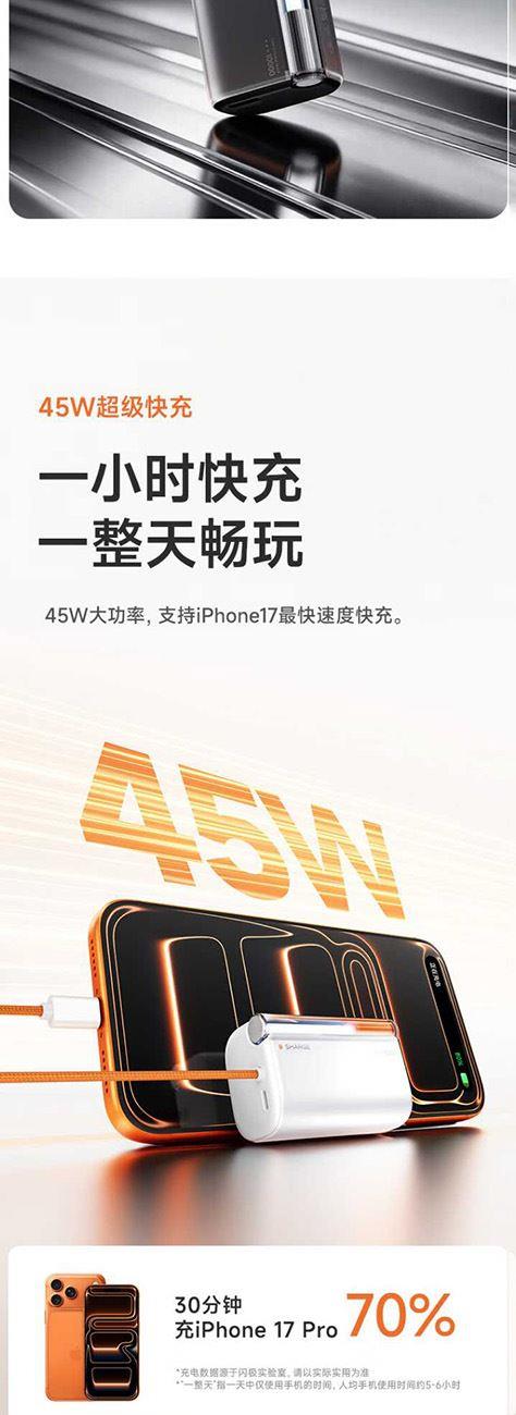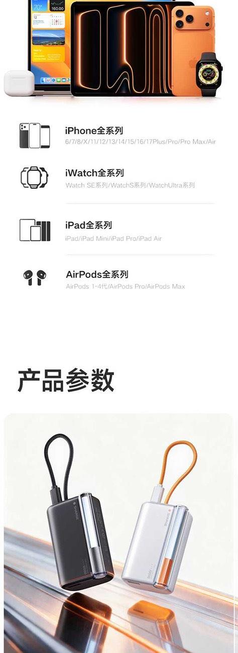 10000mAh,央企-力神21700車規(guī)級(jí)電芯 C線/C口:支持蘋果17系列45W快充、輸入30W(Max) C口+A口+C線,同時(shí)充3臺(tái)設(shè)備 半透設(shè)計(jì),流動(dòng)星軌電量指示燈 3C認(rèn)證,輕巧圓潤(rùn)棱角舒適握持,可上飛機(jī)