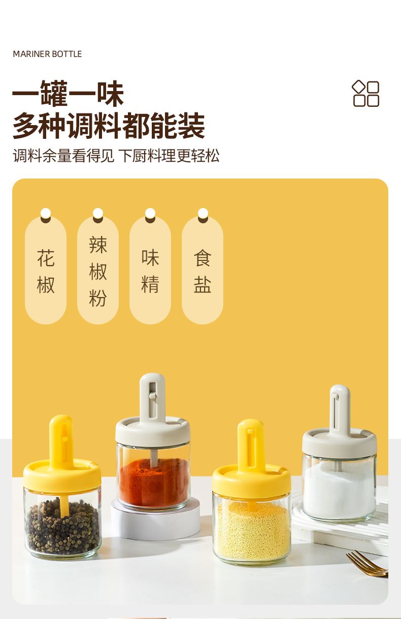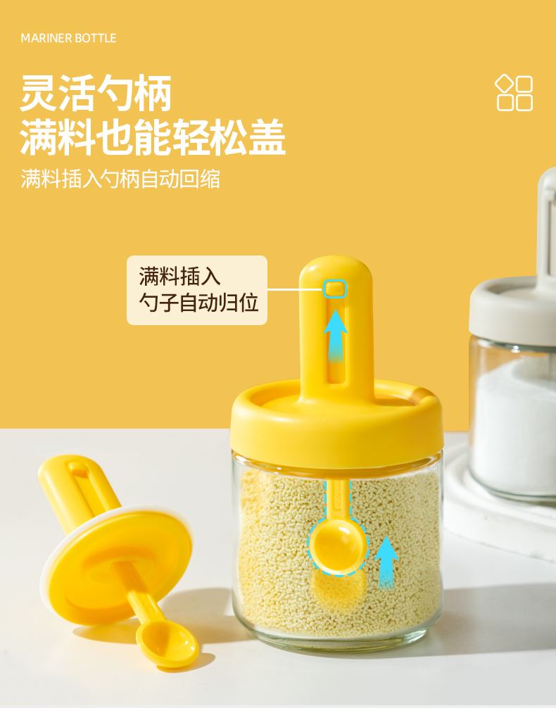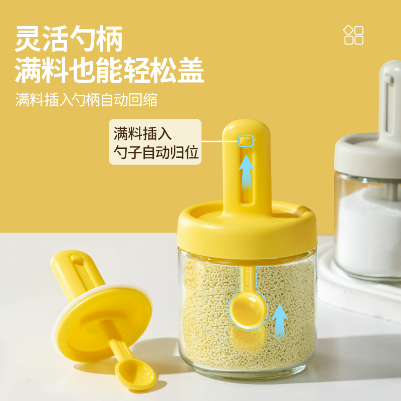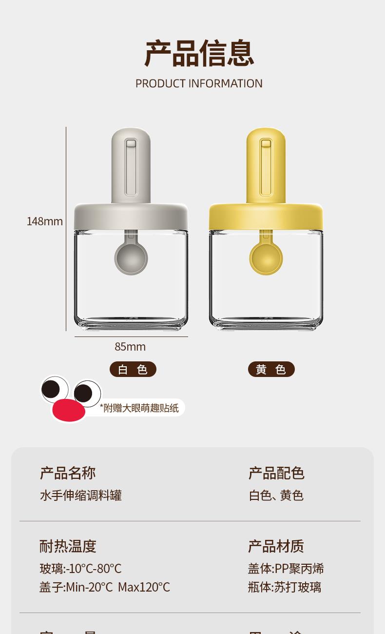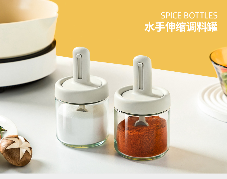 勺蓋一體可伸縮調(diào)料瓶 輕松控料 健康低鹽生活 可伸縮勺柄,勺蓋一體伸縮設(shè)計(jì)調(diào)料輕松舀 伸縮鹽勺使用更便利,無級(jí)伸縮 長度自由調(diào)節(jié) 自帶刮鹽板定量控鹽好幫手 靈活勺柄滿料也能輕松蓋,滿料插入勺柄自動(dòng)回縮 安全穩(wěn)定玻璃不怕腐蝕 各種調(diào)料都能裝
