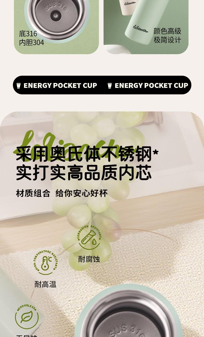 材 質(zhì):杯底SUS316 內(nèi)膽SUS304 容 量:300ml 彩盒尺寸:6*6*19 外箱尺寸:61*31*40 1. 304不銹鋼真空膽身,鎖溫持久,寒冬熱飲常暖; 2. 內(nèi)膽經(jīng)電解研磨工藝處理,光滑抗污,符合食品接觸標準,清潔省心; 3. 極簡杯身線條利落,造型簡約不失設計感,輕量便攜適配多場景;